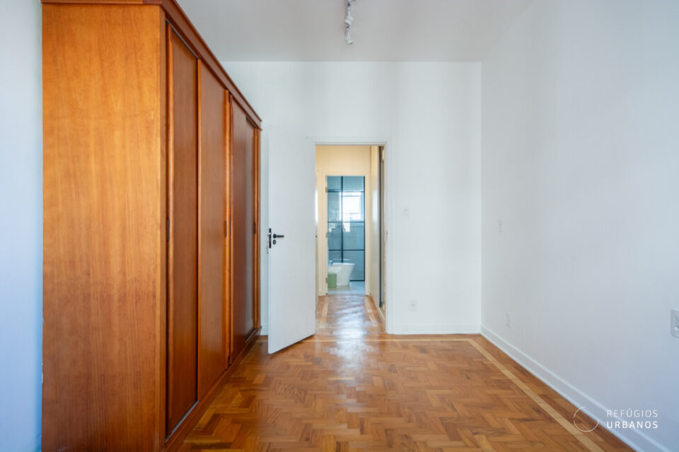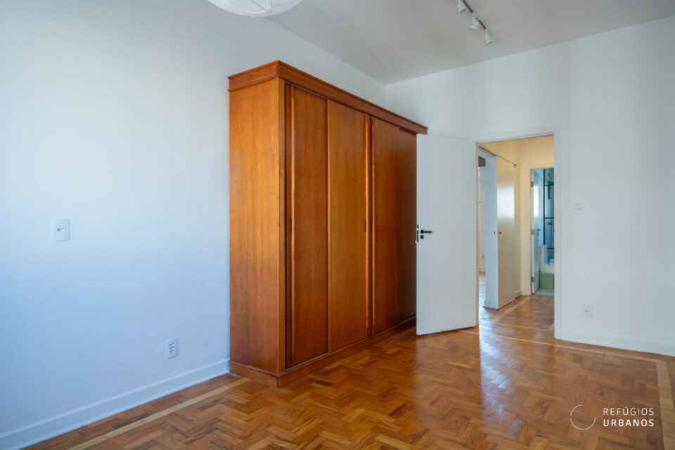 80m², sala integrada com cozinha, 2 suítes, área de serviço, chão de taco original, portaria em horário comercial, na Bela Vista.