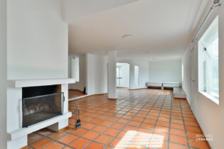 Sua implantação, num terreno improvável, é um elogio à boa arquitetura e sua fachada discreta e elegante atrai o olhar atento daqueles que a admiram.