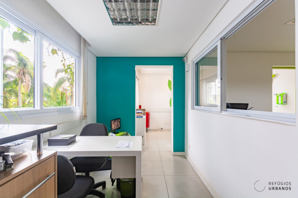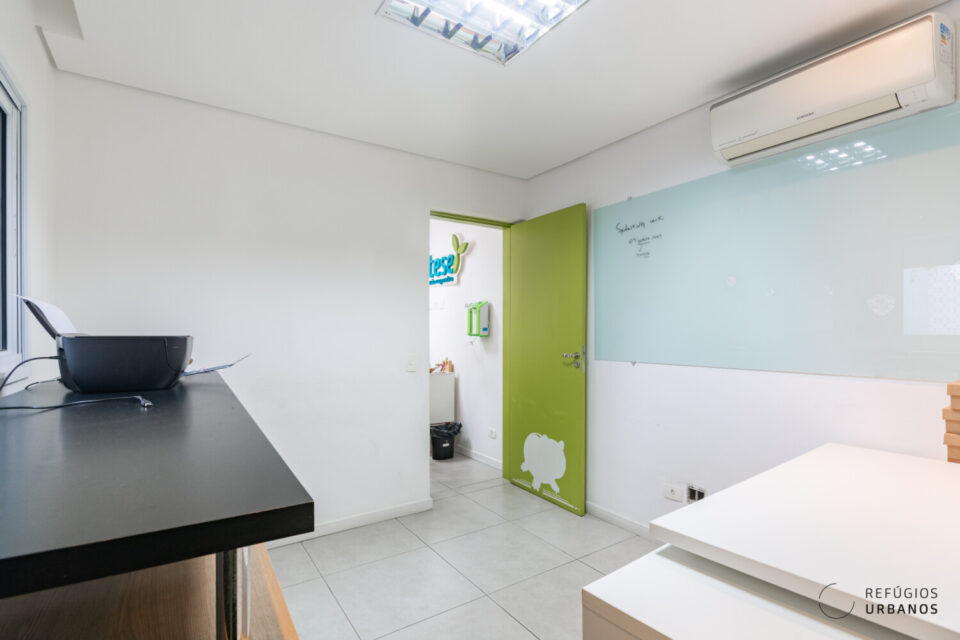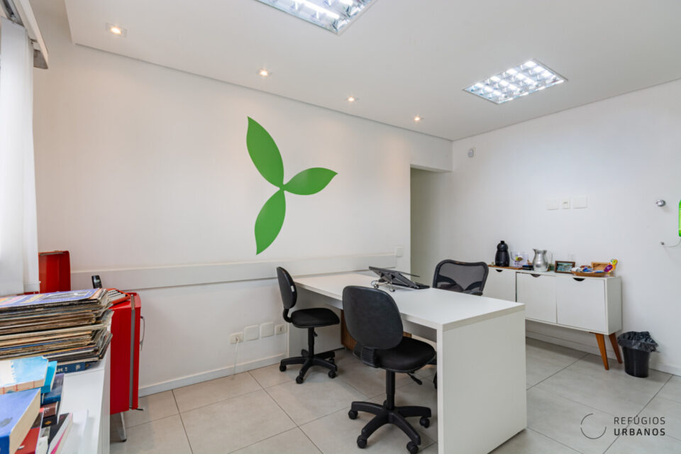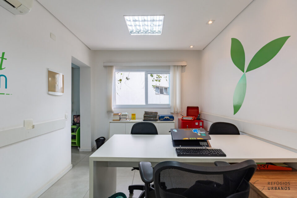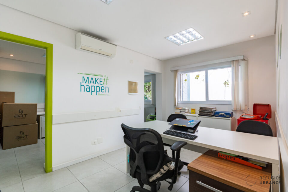 Atualmente utilizado como escritório, o imóvel aguarda algumas intervenções pontuais para revelar todo o seu potencial residencial. Uma das possibilidades é a reintegração da escada original que conectava a sala à área dos quartos.