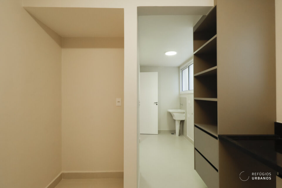 Já a cozinha planejada, se integra de forma fluida à sala. Dessa forma, o espaço ganha leveza, continuidade e harmonia para quem gosta de receber.