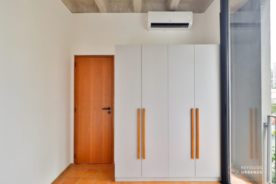 Em seguida, o quarto que, além de espaçoso e super iluminado, dá acesso a uma varanda.