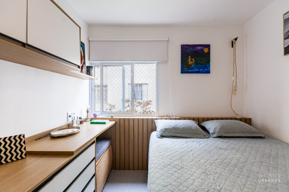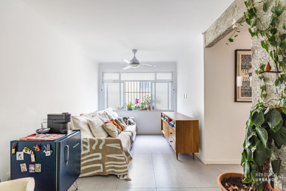 Com árvores na janela, muito verde em volta e o som de passarinhos, esse apê é um verdadeiro refúgio urbano no Alto de Pinheiros.