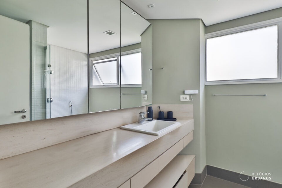 Seguindo para a área íntima, temos três dormitórios, sendo um deles, suíte.