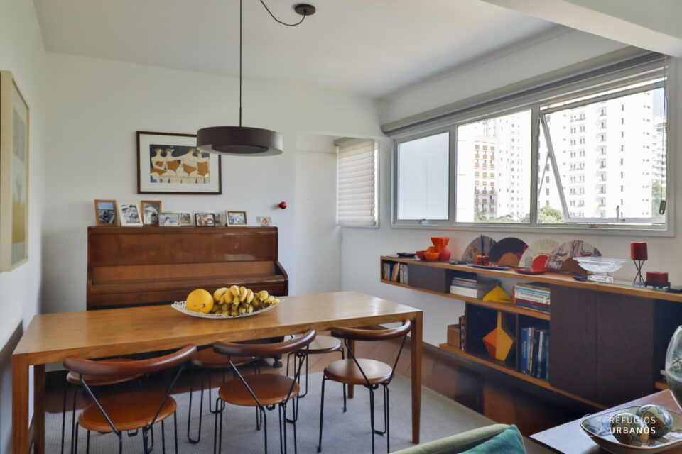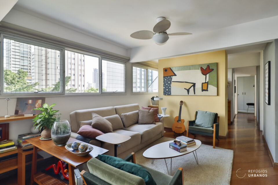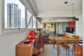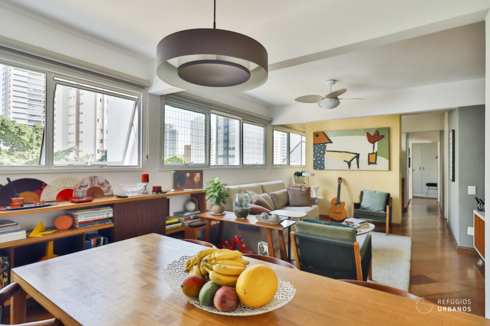 Primeiramente, já temos uma luminosidade incrível que entra pelos janelões da sala, que ampla e arejada, além de contar com um piso lindo em madeira.