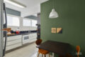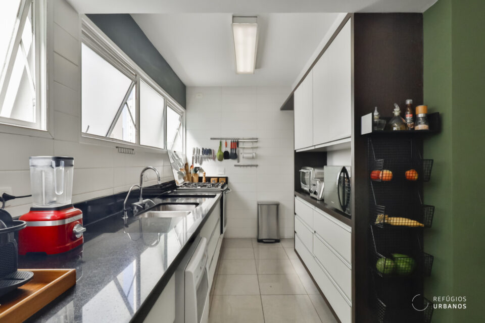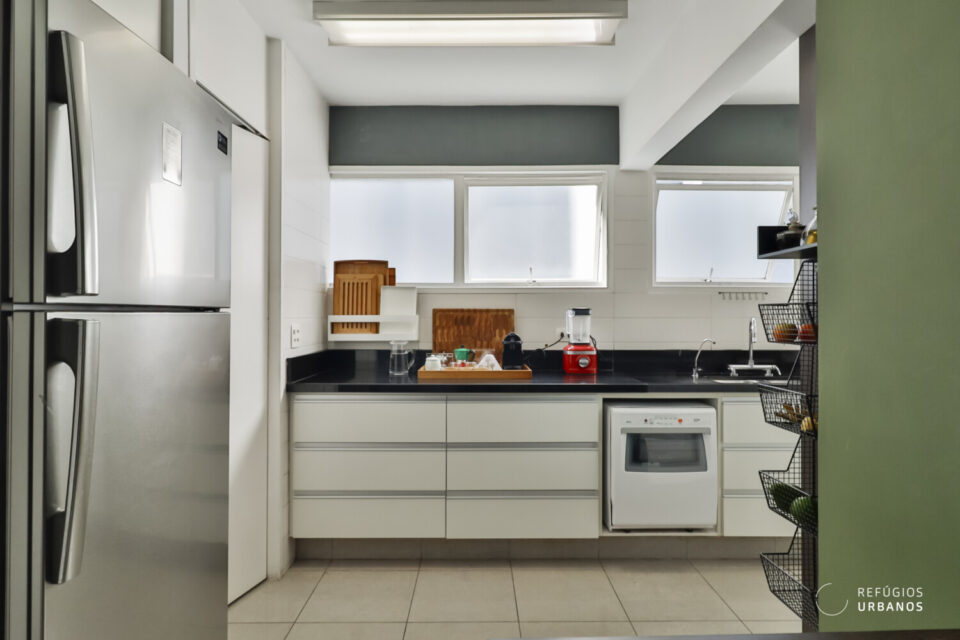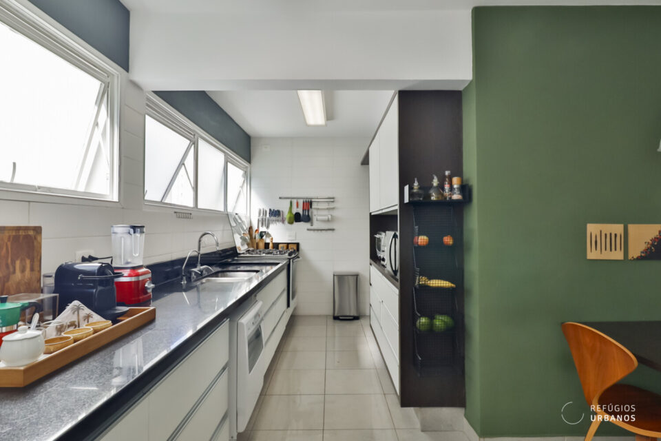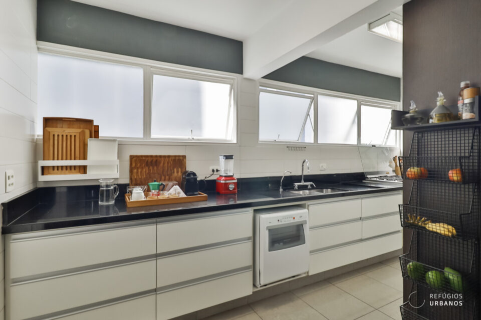 Os janelões também estão presentes em toda a cozinha e lavanderia.