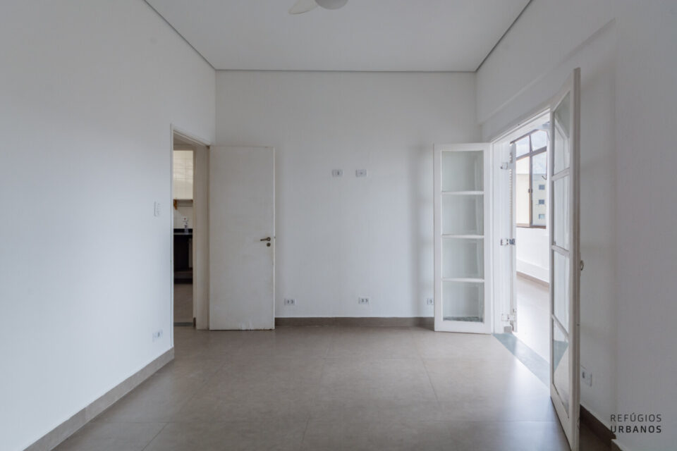 A sala é ampla, bem iluminada e ventilada, graças à generosa porta e o pé direto alto. Além disso, se conecta à varanda.
