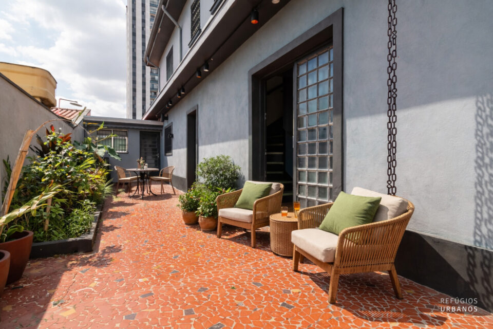 Ela foi reformada em 2023 por arquitetos, mas todos os detalhes dos anos 60 que amamos, eles preservaram, como piso de caquinho no quintal, janelões e piso de taquinho nos ambientes íntimos, para deixar tudo mais aconchegante.