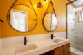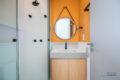 Além disso, o botijão de gás — escondido por um painel ripado de madeira — abastece tanto o fogão quanto os aquecedores de água da cozinha e dos banheiros. E falando em conforto, a casa conta ainda com pressurizador e metais de excelente qualidade, garantindo banhos relaxantes e funcionais.