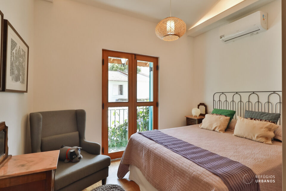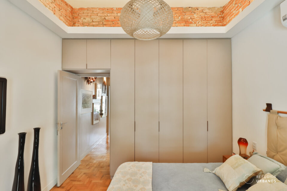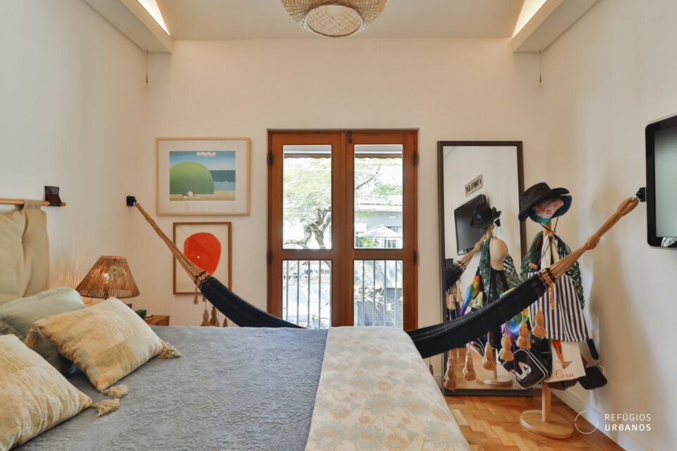 Por fim, piso de taquinho, portas-balcão complementam os quartos e dão aquele toque diferenciado.