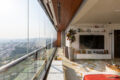 Mas o que é de tirar o fôlego mesmo é a vista. Ela te recebe de forma surpreendente, como se o apartamento tivesse sido construído ao redor dela. Janelas piso a teto ao longo de todo o apartamento, a paisagem lá fora vem para dentro, como se fosse um quadro que participa do seu dia a dia. E o melhor: não existe tempo ruim com essa vista. É sempre um espetáculo. Aqui você vai viver um pôr do sol a cada dia, registros de céus do azul ao laranja, do cinza dramático ao rosa que ninguém acredita.